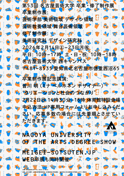 卒業研究展は、建学の精神「新しい美と文化の創造」の理念のもとに、“生活を豊かにするデザインやモノ” という視点に立ったテーマや研究をかたちにし、その成果を制作または論文として発表する4年間の集大成の場です。各学科やコースの特長を生かした作品の数々は、教育成果を学内外に広く発信する機会として毎年多くの方々にご覧いただいています。皆さまお誘いあわせのうえ、ぜひご来場ください。